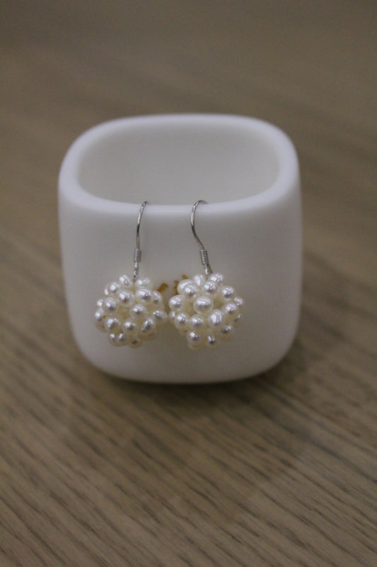 5-5.5mm Cultured white pearls hoop with sterling silver - white